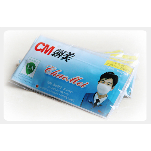 表層為32s紗布,第二層為20g KN95過濾材料,內(nèi)層為90g 針刺棉(點(diǎn)塑);折疊共六層。